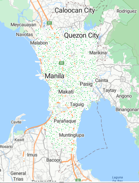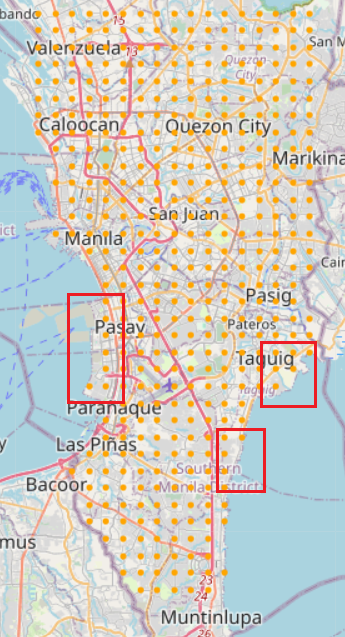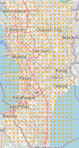 One way to address the issue just mentioned is by filtering the points based on a reference geospatial dataset. For our case, we can choose to filter the points to only the ones that fall within the administrative (land) region of Metro Manila. This data is accessible online using sources like Human Data Exchange. We would need a layer from ADM1 or higher to make sure that we can filter at the regional level.