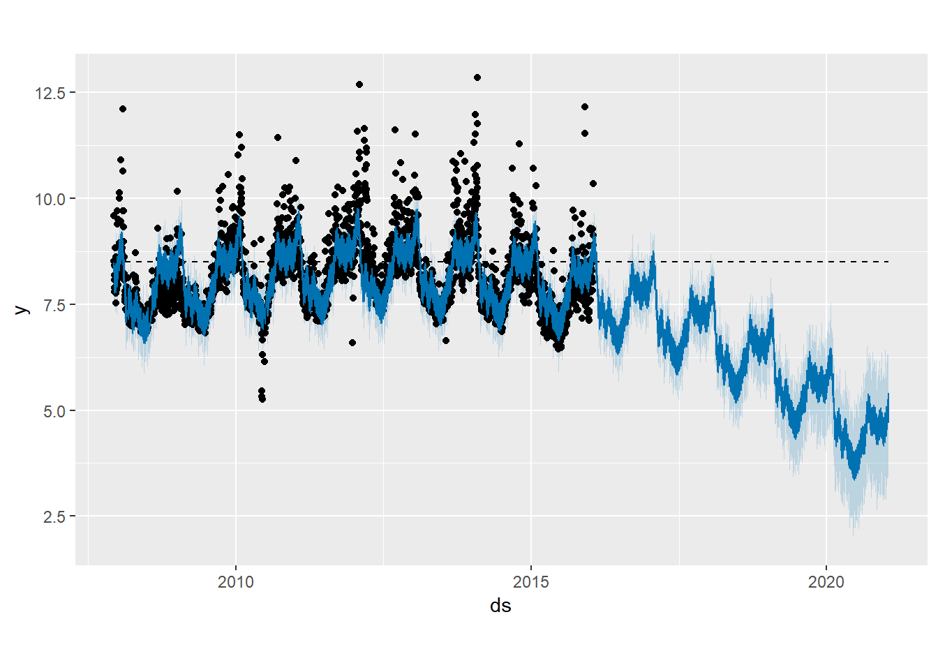 m <- fit.prophet(m, df)Disabling daily seasonality. Run prophet with daily.seasonality=TRUE to override this.