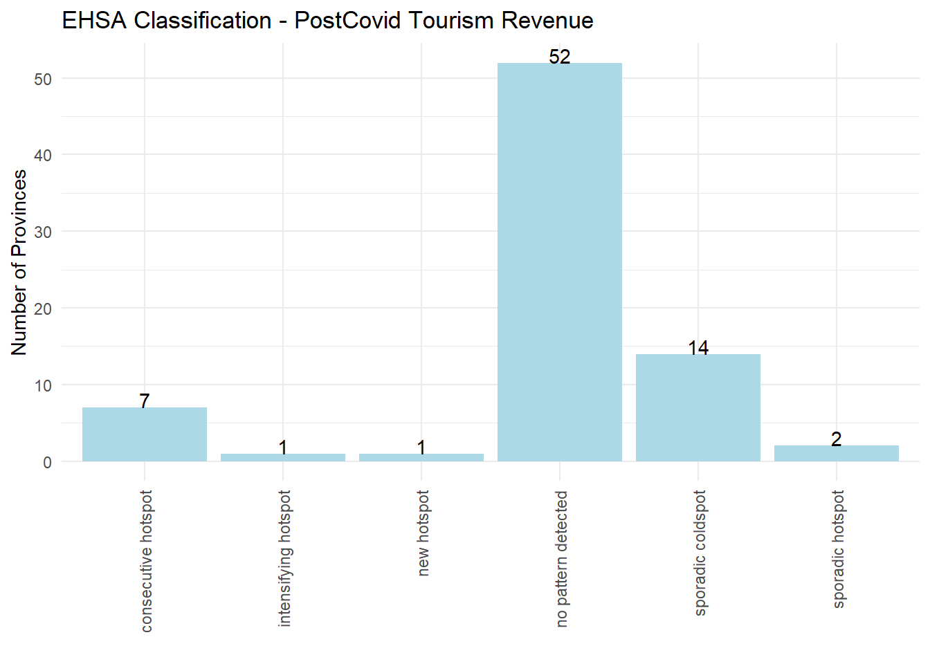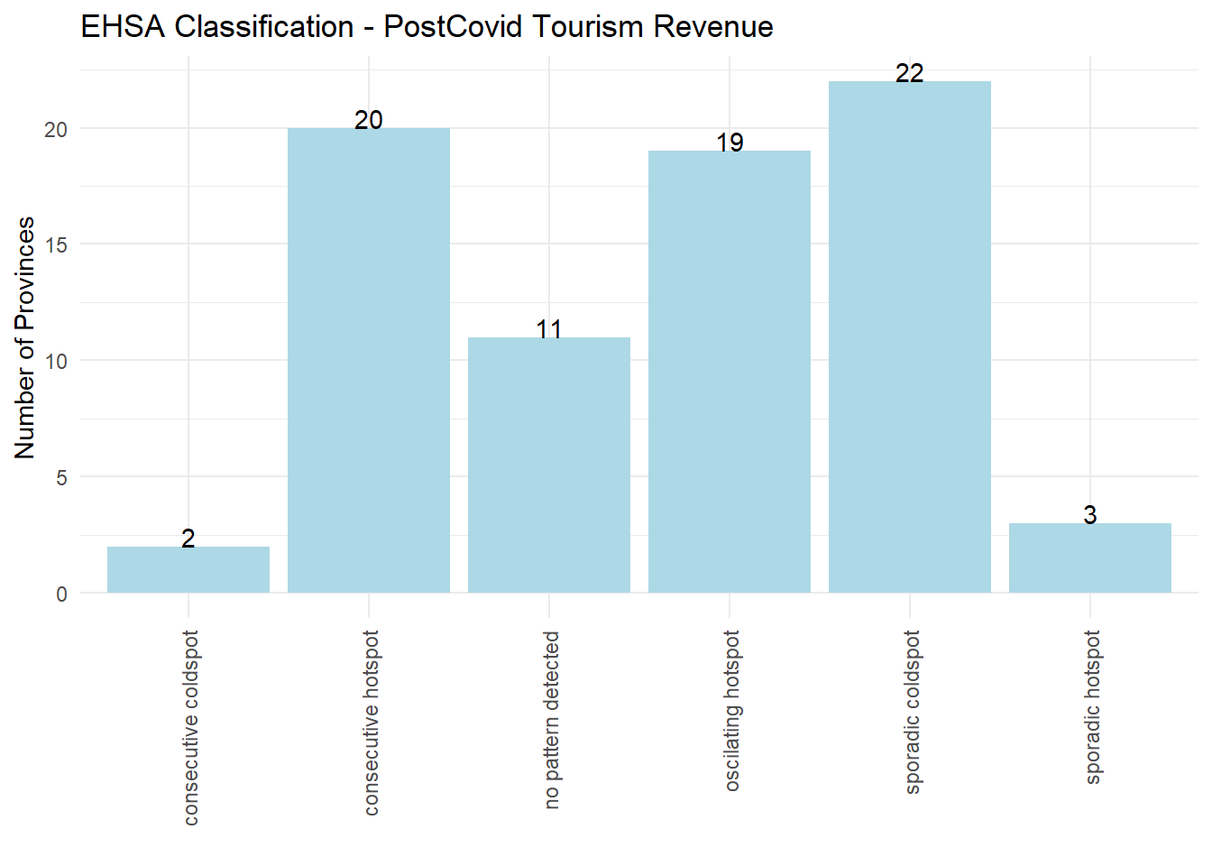 We perform EHSA on the post-covid (2022 onwards) values for the tourist occupancy rates.