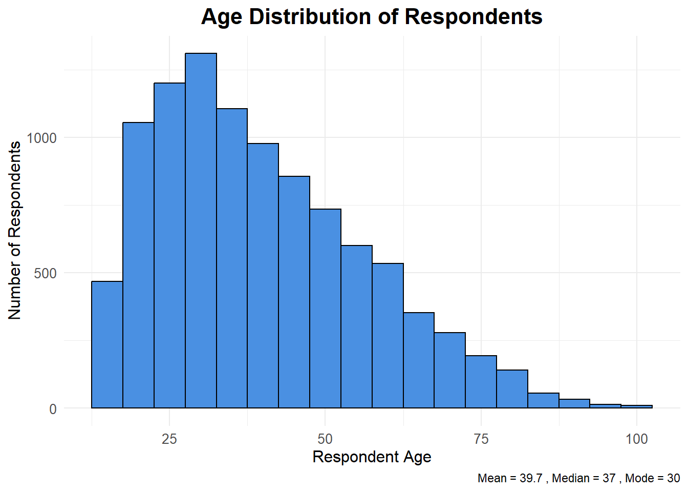 The dataset is contained in a csv and translates the responses from 9,915 individuals who answered the survey