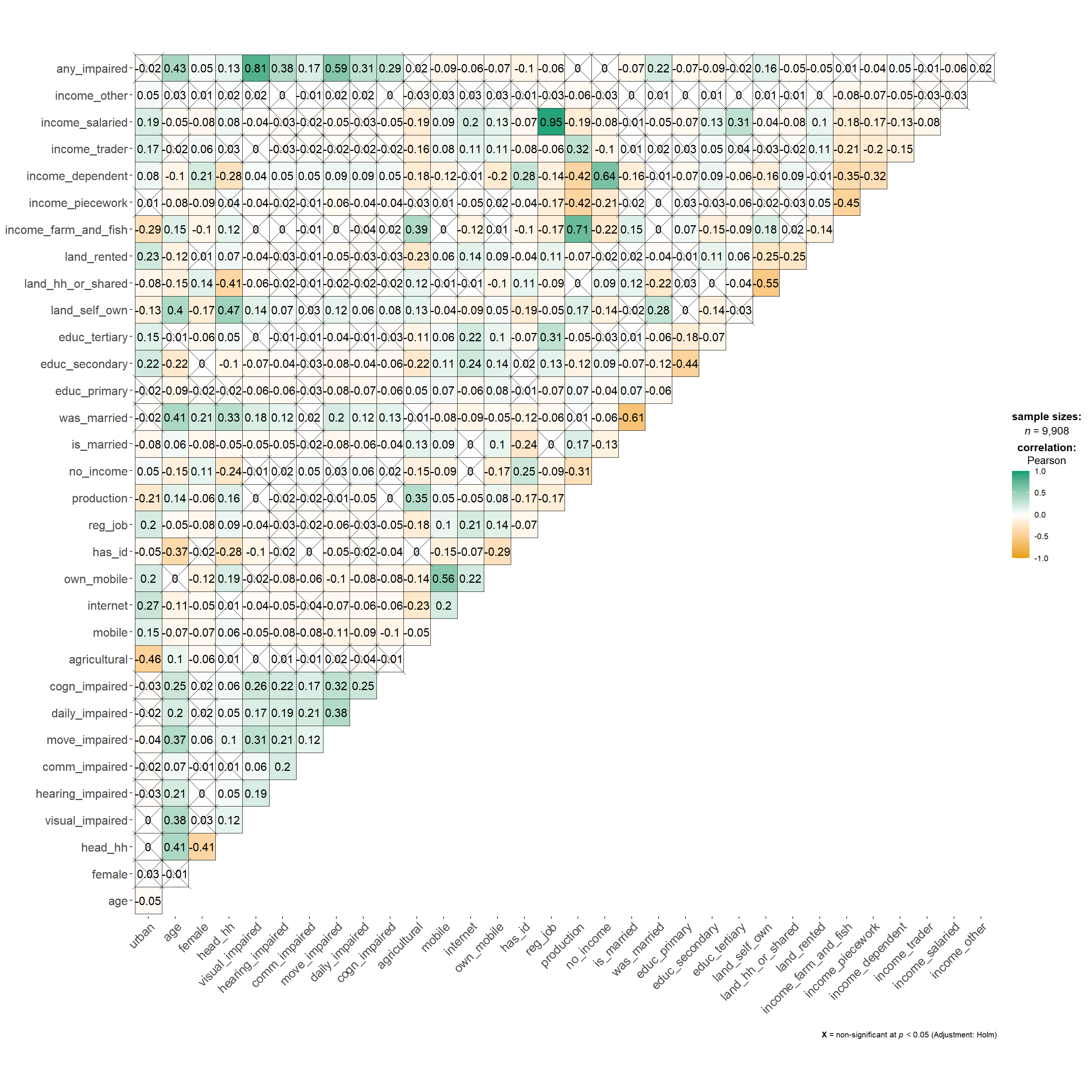 For this study, the following R packages will be used. A description of the packages and the code, using p_load() of the pacman package, to import them is given below.