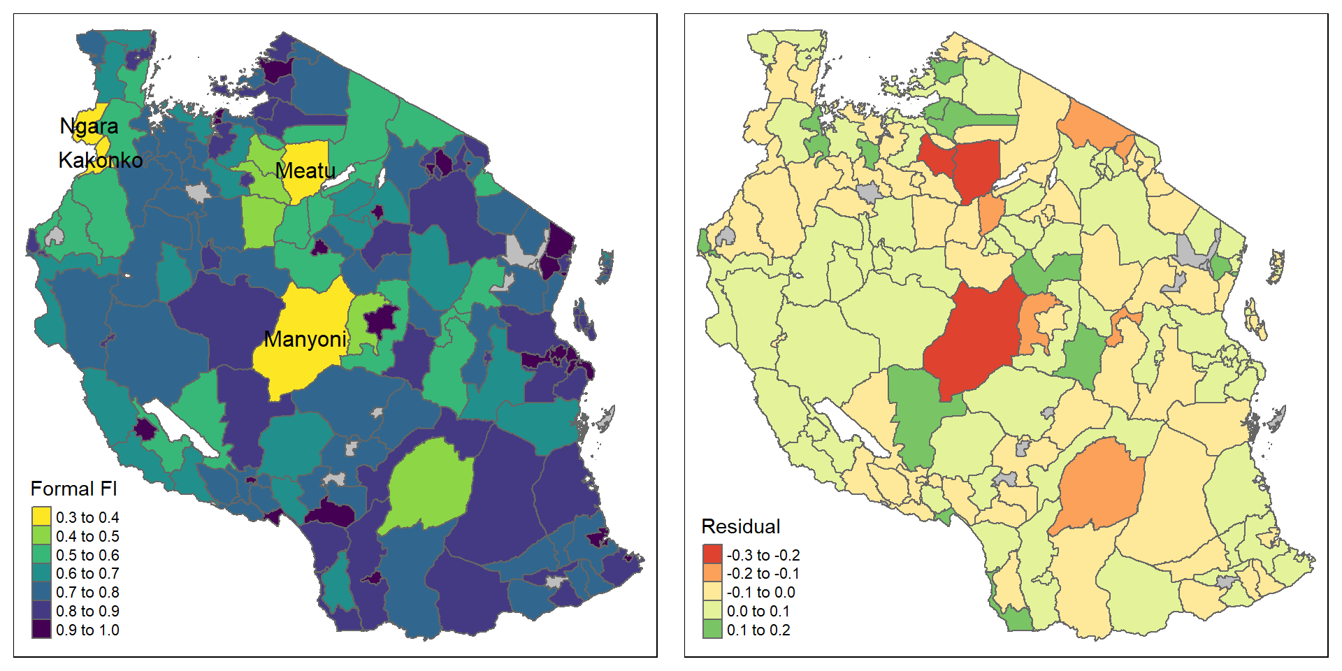 to build a global or non-spatial explanatory model for the level of financial inclusion across Tanzania;
